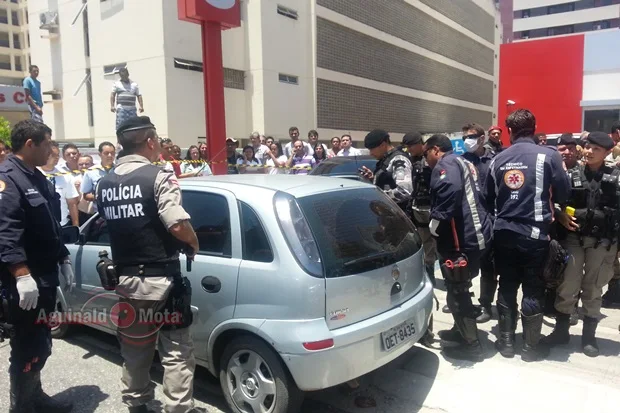 O policial militar desceu do carro e, com a ajuda de um policial civil que estava no interior da agência bancária, conseguiu prender o terceiro assaltante que foi conduzido para a central de Policia.